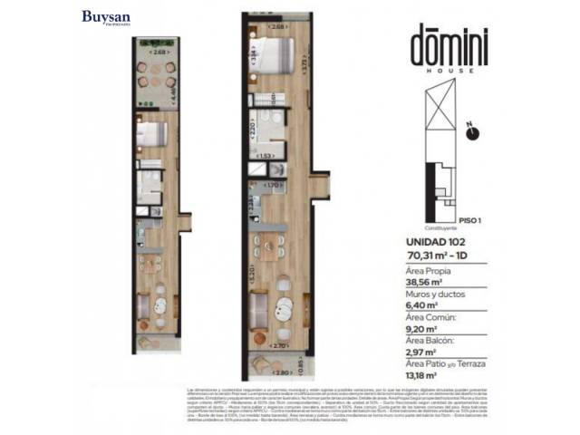 Pisos flotantes vinílicos símil madera en livings, dormitorios y cocinas integradas.