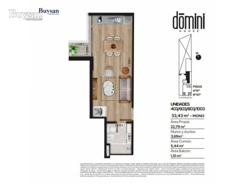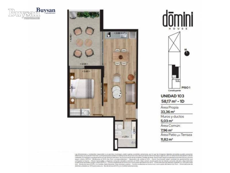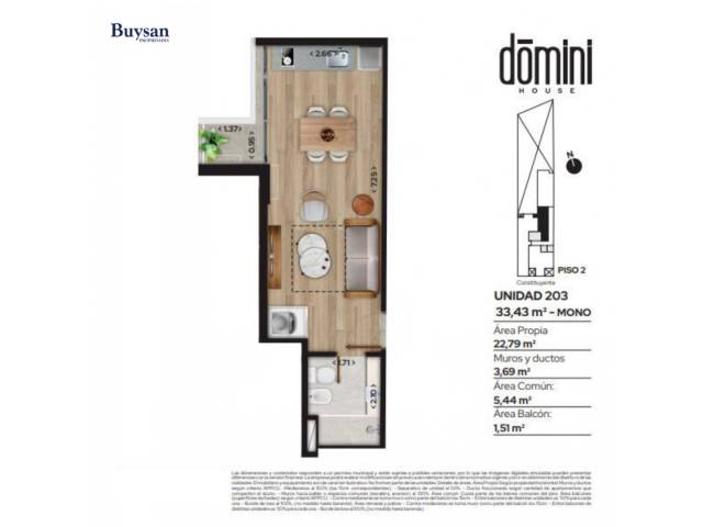 1 Ambiente, 1 Baño, 33 M2 Edificado,